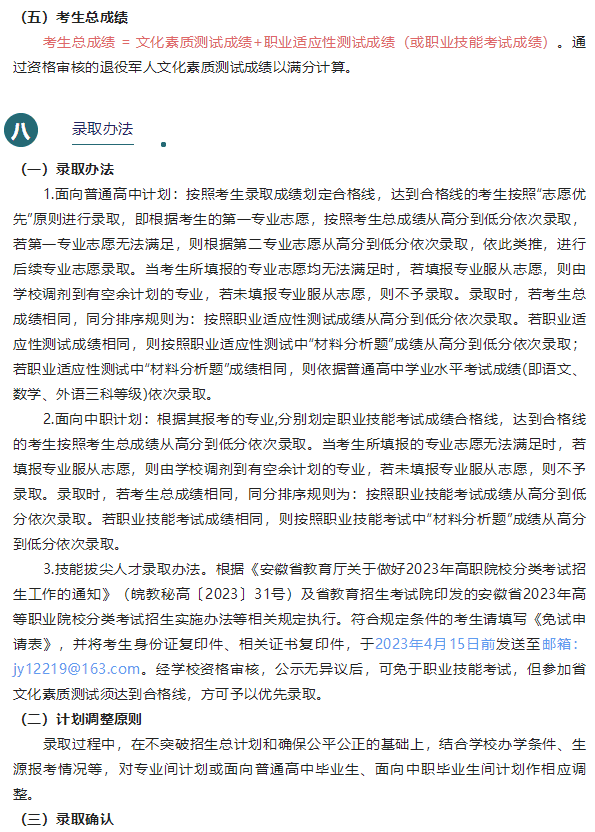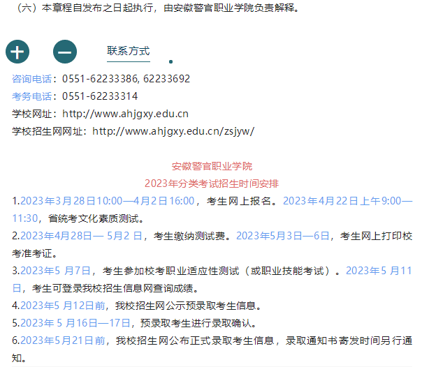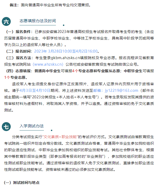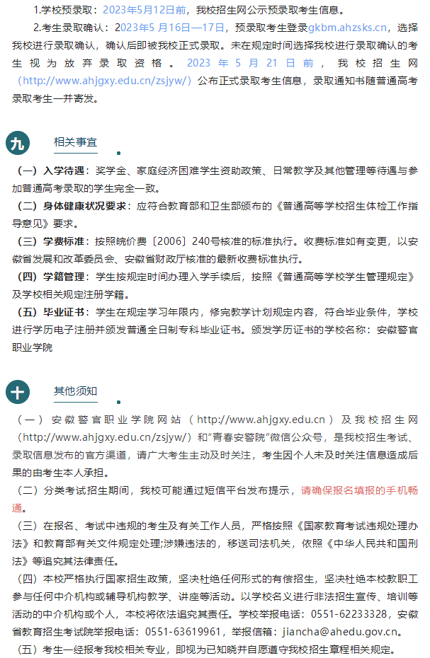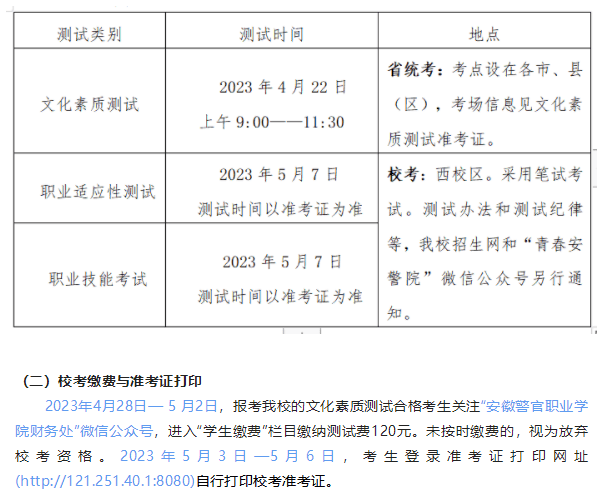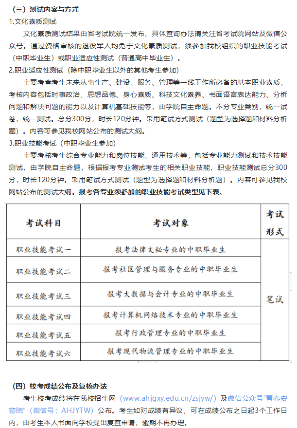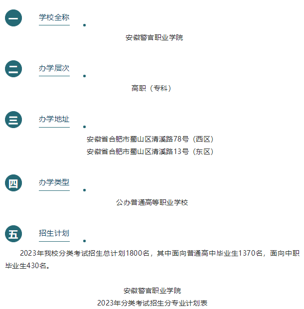 安徽警官职业学院2023年分类考试招生章程